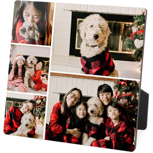 Showcase favorite photos and turn any space into a happy place with desktop plaques. Choose from different shapes, stylish backgrounds, and layouts for one or more photos for a unique look. Plaques include a built-in easel for horizontal or vertical display.