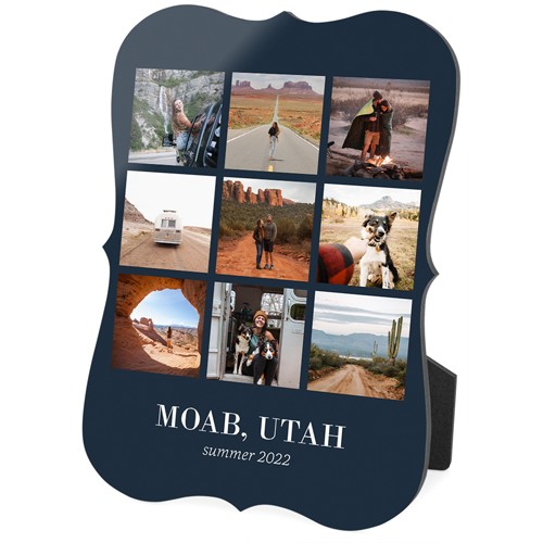 Showcase favorite photos and turn any space into a happy place with desktop plaques. Choose from different shapes, stylish backgrounds, and layouts for one or more photos for a unique look. Plaques include a built-in easel for horizontal or vertical display.