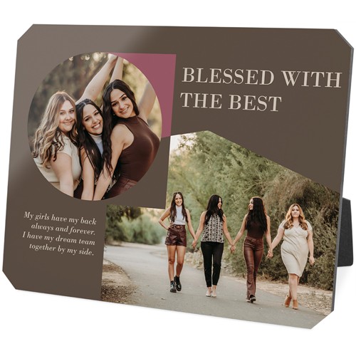 Showcase favorite photos and turn any space into a happy place with desktop plaques. Choose from different shapes, stylish backgrounds, and layouts for one or more photos for a unique look. Plaques include a built-in easel for horizontal or vertical display.