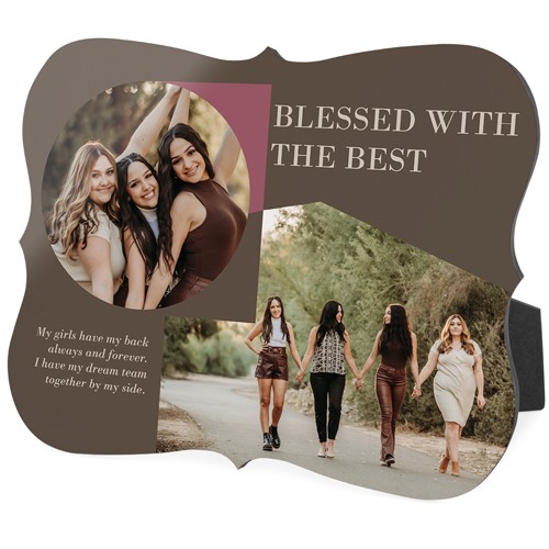 Showcase favorite photos and turn any space into a happy place with desktop plaques. Choose from different shapes, stylish backgrounds, and layouts for one or more photos for a unique look. Plaques include a built-in easel for horizontal or vertical display.
