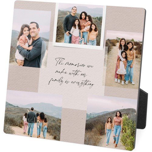 Showcase favorite photos and turn any space into a happy place with desktop plaques. Choose from different shapes, stylish backgrounds, and layouts for one or more photos for a unique look. Plaques include a built-in easel for horizontal or vertical display.