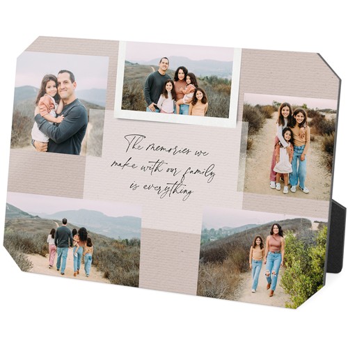 Showcase favorite photos and turn any space into a happy place with desktop plaques. Choose from different shapes, stylish backgrounds, and layouts for one or more photos for a unique look. Plaques include a built-in easel for horizontal or vertical display.