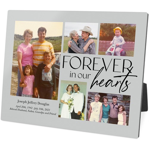 Showcase favorite photos and turn any space into a happy place with desktop plaques. Choose from different shapes, stylish backgrounds, and layouts for one or more photos for a unique look. Plaques include a built-in easel for horizontal or vertical display.
