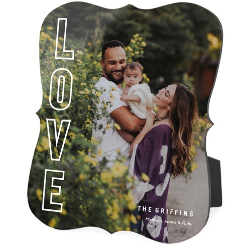 Showcase favorite photos and turn any space into a happy place with desktop plaques. Choose from different shapes, stylish backgrounds, and layouts for one or more photos for a unique look. Plaques include a built-in easel for horizontal or vertical display.