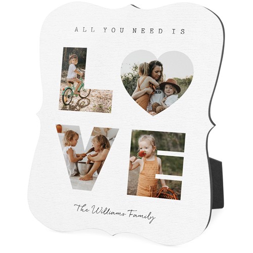 Showcase favorite photos and turn any space into a happy place with desktop plaques. Choose from different shapes, stylish backgrounds, and layouts for one or more photos for a unique look. Plaques include a built-in easel for horizontal or vertical display.