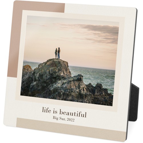 Showcase favorite photos and turn any space into a happy place with desktop plaques. Choose from different shapes, stylish backgrounds, and layouts for one or more photos for a unique look. Plaques include a built-in easel for horizontal or vertical display.
