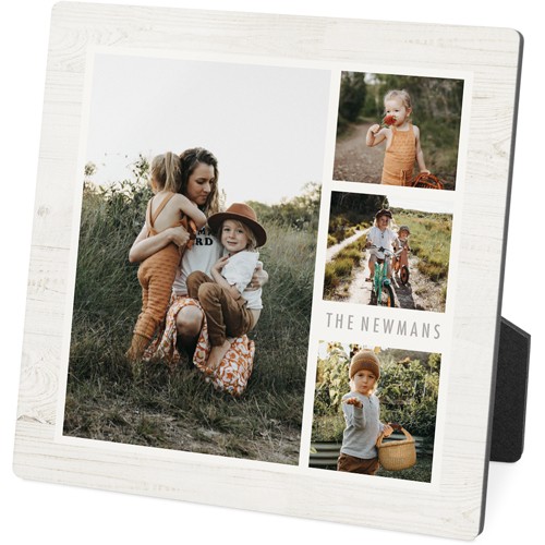 Showcase favorite photos and turn any space into a happy place with desktop plaques. Choose from different shapes, stylish backgrounds, and layouts for one or more photos for a unique look. Plaques include a built-in easel for horizontal or vertical display.
