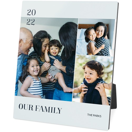 Showcase favorite photos and turn any space into a happy place with desktop plaques. Choose from different shapes, stylish backgrounds, and layouts for one or more photos for a unique look. Plaques include a built-in easel for horizontal or vertical display.