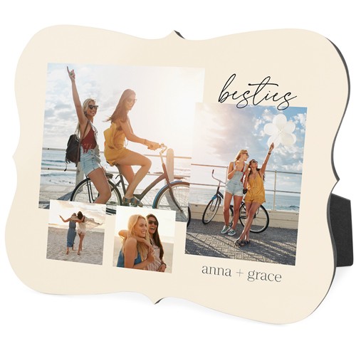 Showcase favorite photos and turn any space into a happy place with desktop plaques. Choose from different shapes, stylish backgrounds, and layouts for one or more photos for a unique look. Plaques include a built-in easel for horizontal or vertical display.