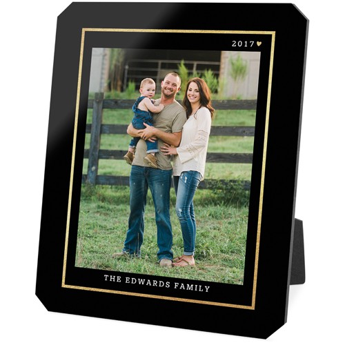 Showcase favorite photos and turn any space into a happy place with desktop plaques. Choose from different shapes, stylish backgrounds, and layouts for one or more photos for a unique look. Plaques include a built-in easel for horizontal or vertical display.