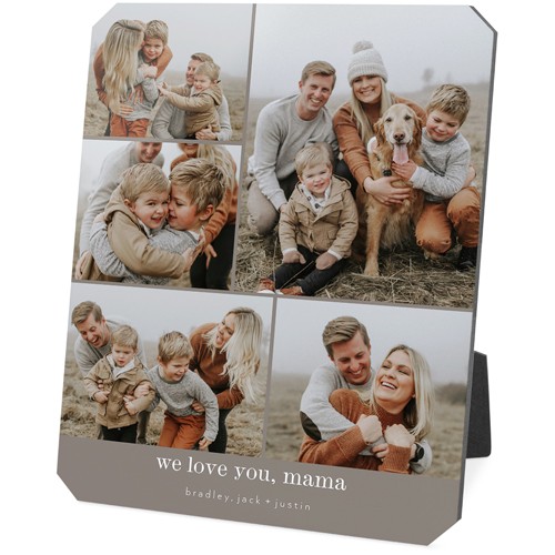 Showcase favorite photos and turn any space into a happy place with desktop plaques. Choose from different shapes, stylish backgrounds, and layouts for one or more photos for a unique look. Plaques include a built-in easel for horizontal or vertical display.