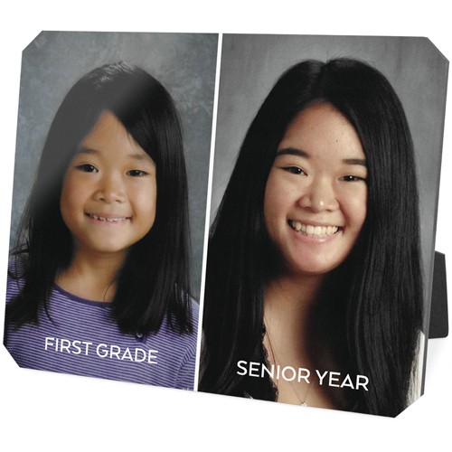 Showcase favorite photos and turn any space into a happy place with desktop plaques. Choose from different shapes, stylish backgrounds, and layouts for one or more photos for a unique look. Plaques include a built-in easel for horizontal or vertical display.