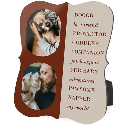 Showcase favorite photos and turn any space into a happy place with desktop plaques. Choose from different shapes, stylish backgrounds, and layouts for one or more photos for a unique look. Plaques include a built-in easel for horizontal or vertical display.
