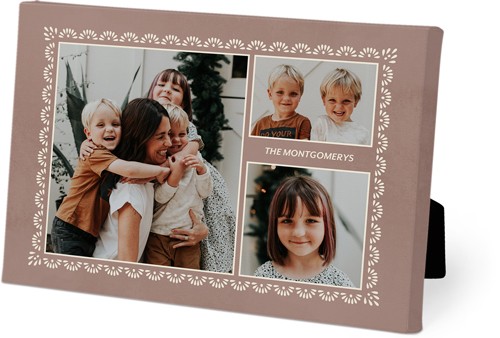This wrapped canvas stands on its own. Available in both horizontal and vertical display, you can create it with a quote, pattern or picture to make a design statement.
