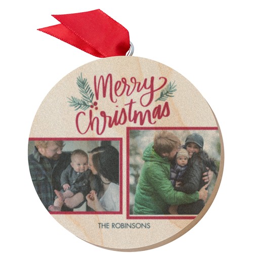 Add a rustic vibe to your Christmas tree or holiday hearth with our elegant wooden ornament. Available in square and circle shapes with front photo space on both.