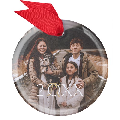 Elegant Bow Year Glass Ornament