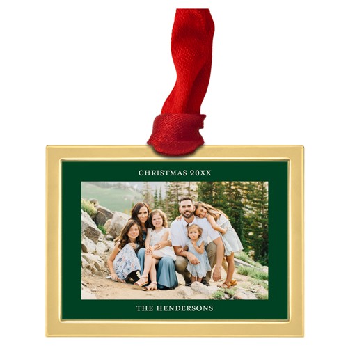 This luxe frame ornament brings a classic touch to your holiday decor with its elegant frame and deep green border, perfectly highlighting your favorite family photo. The design features space to add your family name and the year, making it a truly personalized Christmas ornament you’ll treasure for years to come. Available in both gold and silver shades, this photo frame ornament is a timeless way to showcase special memories—whether it’s a family portrait, a milestone moment, or a snapshot from a favorite trip. Each custom Christmas ornament comes in a soft storage pouch and hangs from the tree with a festive red ribbon. Luxe ornaments are a wonderful way to add to your ornament collection, capturing the little moments that made your year. They also make thoughtful gifts for loved ones or keepsakes to enjoy every holiday season.