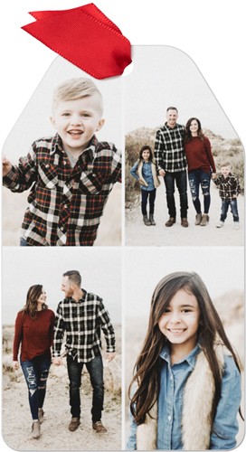 Showcase your favorite family moments with this traditional metal Christmas ornament, featuring a clean, modern layout that lets your photos shine. The design is simple and timeless, making it easy to highlight the people and memories that matter most. Crafted from durable, high-quality coated aluminum, this personalized Christmas ornament is printed on both sides—so you can add even more photos or a heartfelt message on the back. Customize with your family name, the year, or a special note to make it truly yours. Available in four shapes: square, circle, rectangle bracket, and gift tag, it comes in a soft storage pouch and hangs from the tree with a festive red ribbon. Photo ornaments are a wonderful way to add to your ornament collection, capturing the special little moments that made your year. They also make great stocking stuffers or reusable present gift tags.