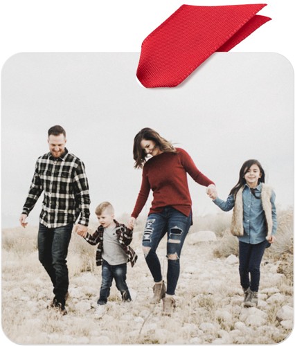 Showcase your favorite family moments with this traditional metal Christmas ornament, featuring a clean, modern layout that lets your photos shine. The design is simple and timeless, making it easy to highlight the people and memories that matter most. Crafted from durable, high-quality coated aluminum, this personalized Christmas ornament is printed on both sides—so you can add even more photos or a heartfelt message on the back. Customize with your family name, the year, or a special note to make it truly yours. Available in four shapes: square, circle, rectangle bracket, and gift tag, it comes in a soft storage pouch and hangs from the tree with a festive red ribbon. Photo ornaments are a wonderful way to add to your ornament collection, capturing the special little moments that made your year. They also make great stocking stuffers or reusable present gift tags.