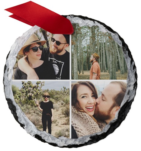 This elegant, personalized slate ornament will be a one-of-a-kind addition to any tree. Made of natural stone, no two ornaments will be exactly alike. Available in round or square, the ornaments are personalized on one side and come with a red ribbon. Customize with a photo, monogram and more for the perfect gift for family, friends, teachers and colleagues.