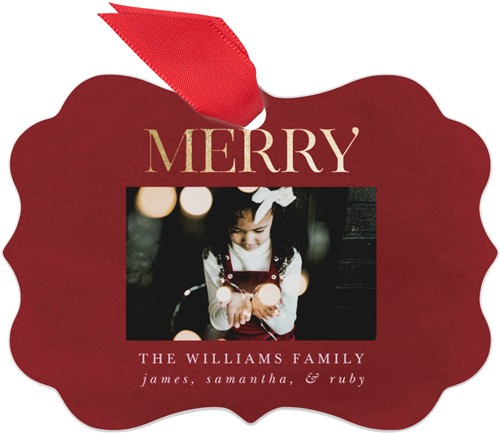 Golden Modern Merry Metal Ornament