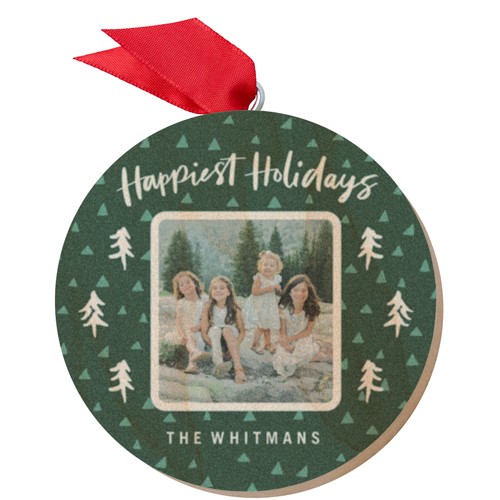 Add a rustic vibe to your Christmas tree or holiday hearth with our elegant wooden ornament. Available in square and circle shapes with front photo space on both.
