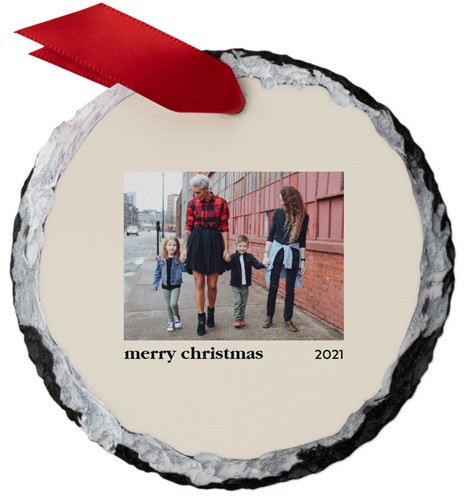 This elegant, personalized slate ornament will be a one-of-a-kind addition to any tree. Made of natural stone, no two ornaments will be exactly alike. Available in round or square, the ornaments are personalized on one side and come with a red ribbon. Customize with a photo, monogram and more for the perfect gift for family, friends, teachers and colleagues.