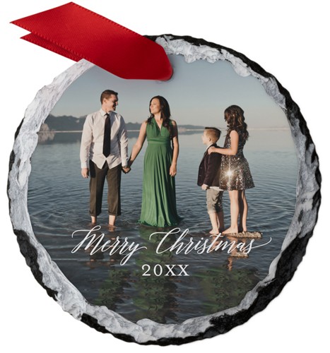 This elegant, personalized slate ornament will be a one-of-a-kind addition to any tree. Made of natural stone, no two ornaments will be exactly alike. Available in round or square, the ornaments are personalized on one side and come with a red ribbon. Customize with a photo, monogram and more for the perfect gift for family, friends, teachers and colleagues.