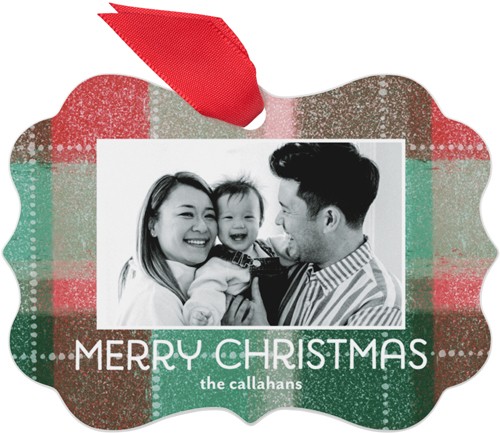 Textured Christmas Plaid Metal Ornament