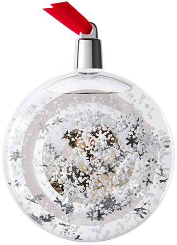 • Liquid filled; with white snow and silver snowflakes