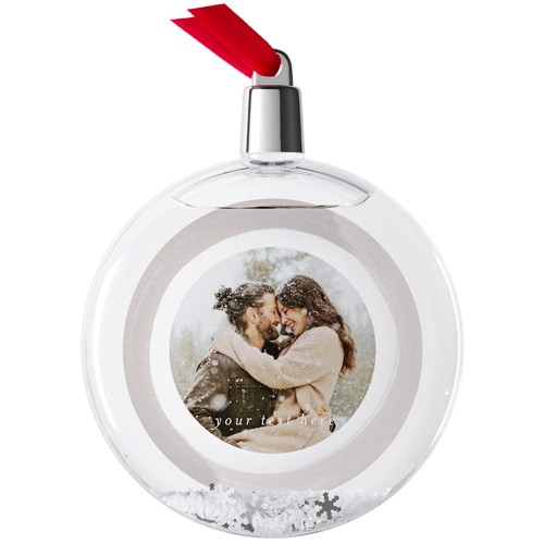 Embrace the magic of the holiday season by bringing cherished memories to life in your own custom snow globe, complete with swirling white snow and silver snowflakes. This mesmerizing liquid-filled tree ornament lets you festively showcase favorite photos, transforming special moments into whimsical wintertime scenes. With the option to personalize with a loved one’s name or a heartfelt holiday message, this ornament makes a delightful keepsake to commemorate special occasions or a truly one-of-a-kind gift they’ll treasure forever.