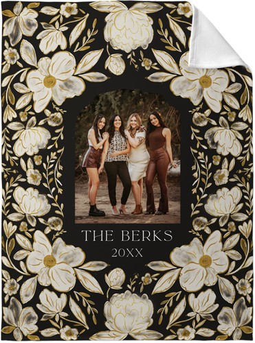 Dark Floral Frame​ Fleece Photo Blanket