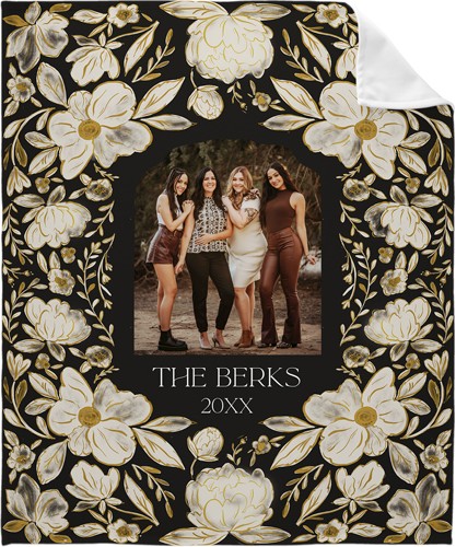 Dark Floral Frame​ Fleece Photo Blanket