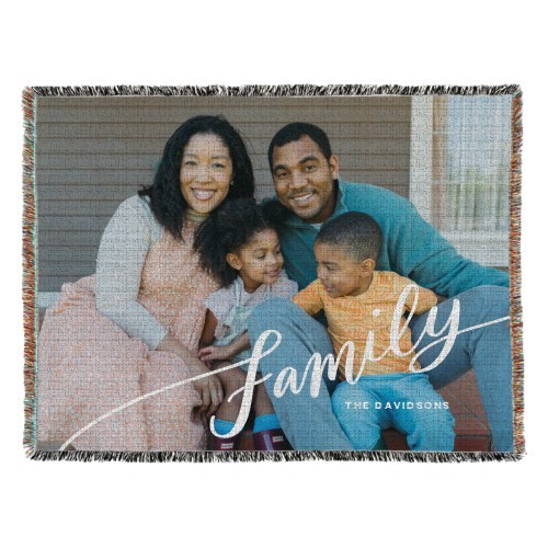 Tilted Family Script Woven Photo Blanket