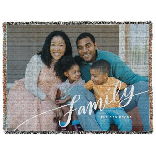 Tilted Family Script Woven Photo Blanket