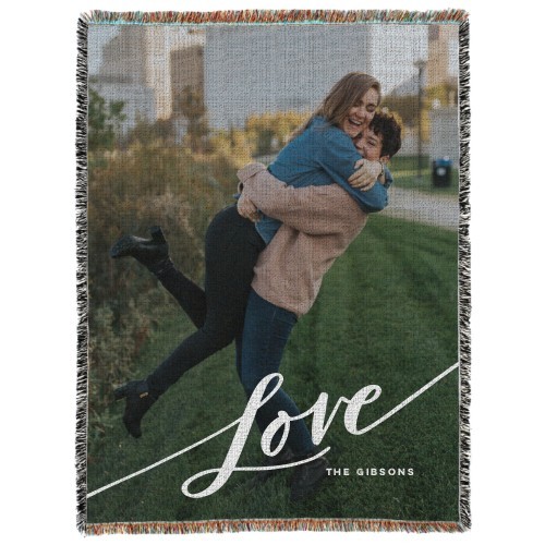 Tilted Love Script Portrait Woven Photo Blanket