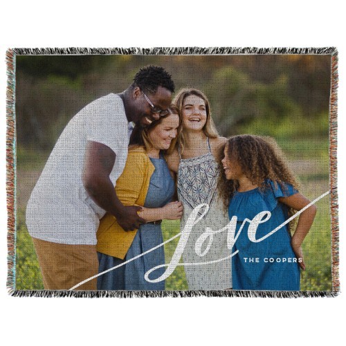 Tilted Love Script Woven Photo Blanket