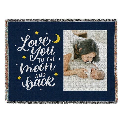 To The Moon and Back Script Woven Photo Blanket