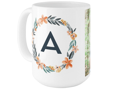 Bright Floral Wreath Monogram Photo Mug