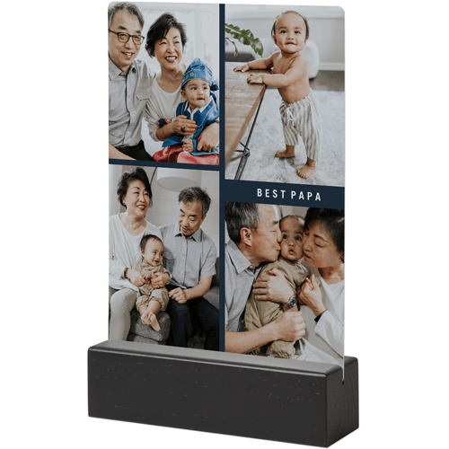 A tabletop metal print is a great personalized addition to coordinate with your modern aesthetic. Pick a black or natural Oak wood block to match your photos and space. This would also make a great gift for friends, parents or grandparents so you can remember favorite memories together.