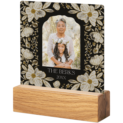 Dark Floral Frame​ Tabletop Metal Print