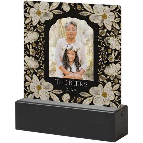 Dark Floral Frame​ Tabletop Metal Print