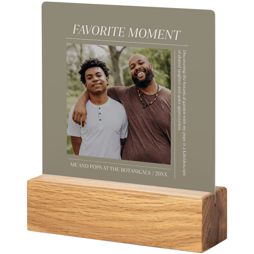 A tabletop metal print is a great personalized addition to coordinate with your modern aesthetic. Pick a black or natural Oak wood block to match your photos and space. This would also make a great gift for friends, parents or grandparents so you can remember favorite memories together.