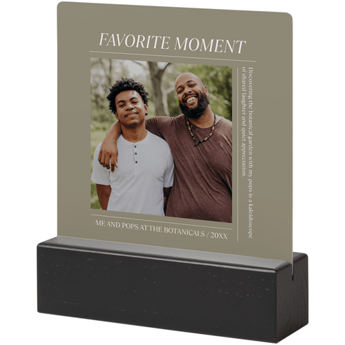 A tabletop metal print is a great personalized addition to coordinate with your modern aesthetic. Pick a black or natural Oak wood block to match your photos and space. This would also make a great gift for friends, parents or grandparents so you can remember favorite memories together.