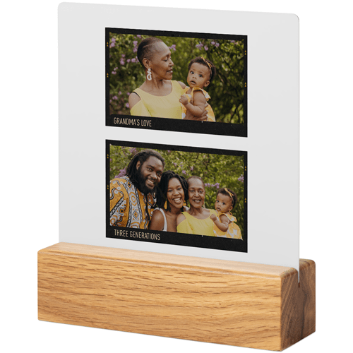 A tabletop metal print is a great personalized addition to coordinate with your modern aesthetic. Pick a black or natural Oak wood block to match your photos and space. This would also make a great gift for friends, parents or grandparents so you can remember favorite memories together.