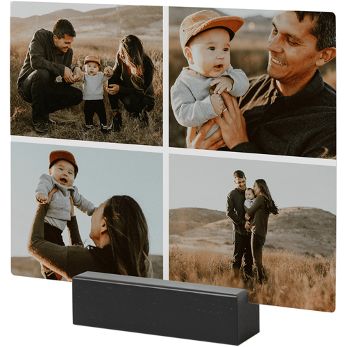 A tabletop metal print is a great personalized addition to coordinate with your modern aesthetic. Pick a black or natural Oak wood block to match your photos and space. This would also make a great gift for friends, parents or grandparents so you can remember favorite memories together.