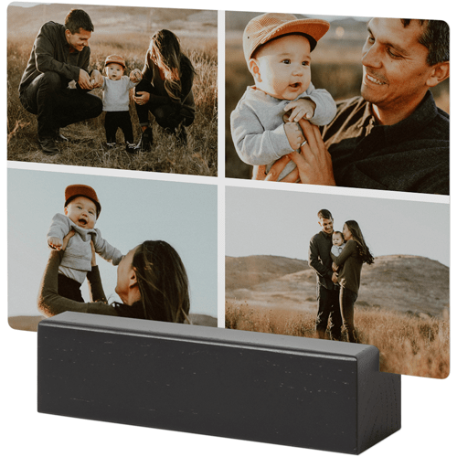 A tabletop metal print is a great personalized addition to coordinate with your modern aesthetic. Pick a black or natural Oak wood block to match your photos and space. This would also make a great gift for friends, parents or grandparents so you can remember favorite memories together.