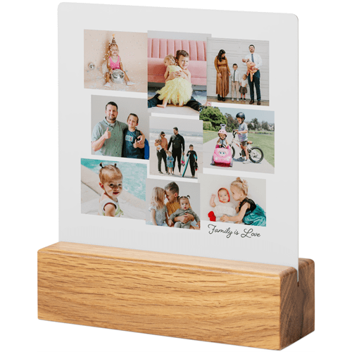 A tabletop metal print is a great personalized addition to coordinate with your modern aesthetic. Pick a black or natural Oak wood block to match your photos and space. This would also make a great gift for friends, parents or grandparents so you can remember favorite memories together.
