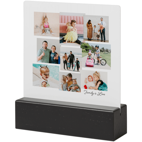 A tabletop metal print is a great personalized addition to coordinate with your modern aesthetic. Pick a black or natural Oak wood block to match your photos and space. This would also make a great gift for friends, parents or grandparents so you can remember favorite memories together.