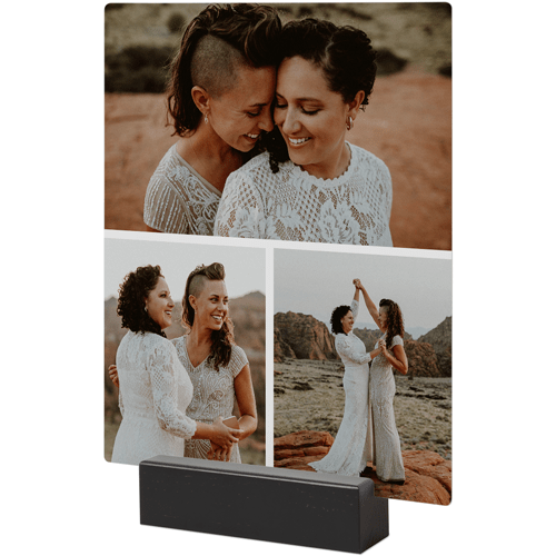 A tabletop metal print is a great personalized addition to coordinate with your modern aesthetic. Pick a black or natural Oak wood block to match your photos and space. This would also make a great gift for friends, parents or grandparents so you can remember favorite memories together.